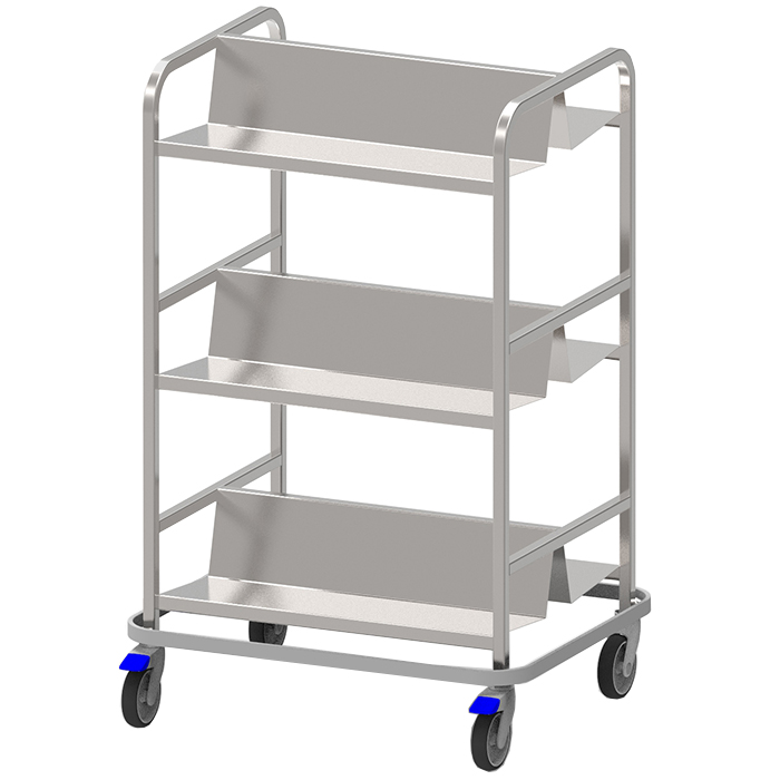 4 st. övervikta kanter 30 mm bred och 20 mm djup samt svetsat hörn. Helsvetsat stativ av rostfria fyrkantsrör 30×30 mm, bassäng av 1,5 mm rostfri plåt. Försedd med 125 mm kullagrade länkhjul i stål, varav 2 st. med broms. Avlopp: kulventil, anslutning Ø32 mm.