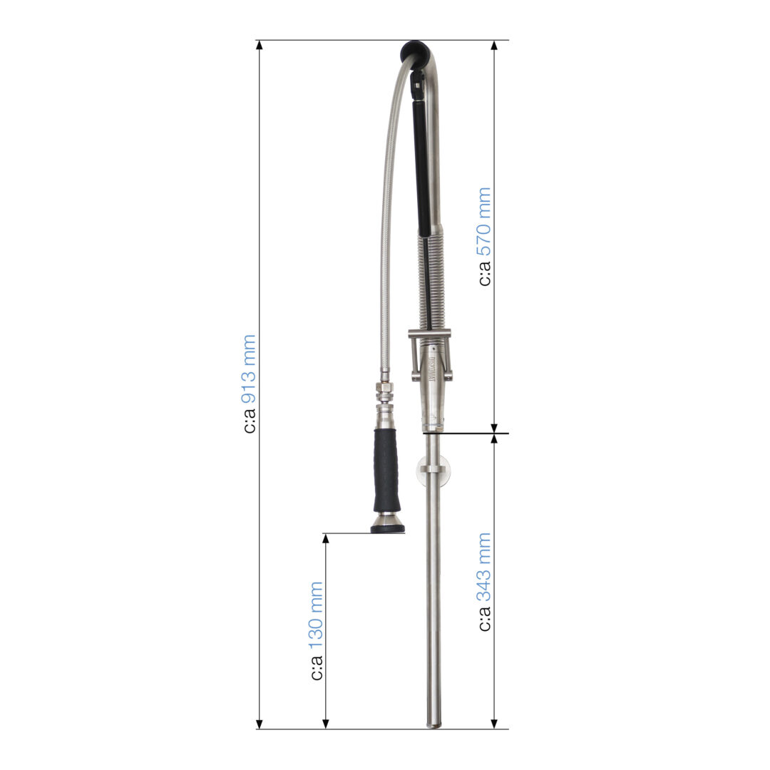 • Vid en befintligt monterad blandare kan man justera munstycks höjden med hjälp av en kortare slang, längd 800 mm.